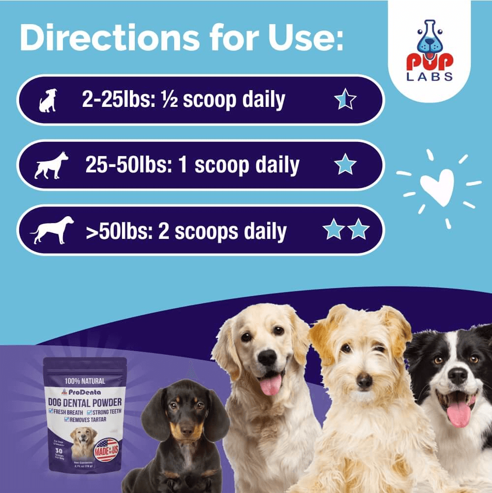 Simply give one serving daily mixed with food or water. Dogs under 50 lbs need 1 scoop daily. Dogs over 50 lbs need 2 scoops daily. Just follow the recommended dose on the packaging for optimal dental health benefits.